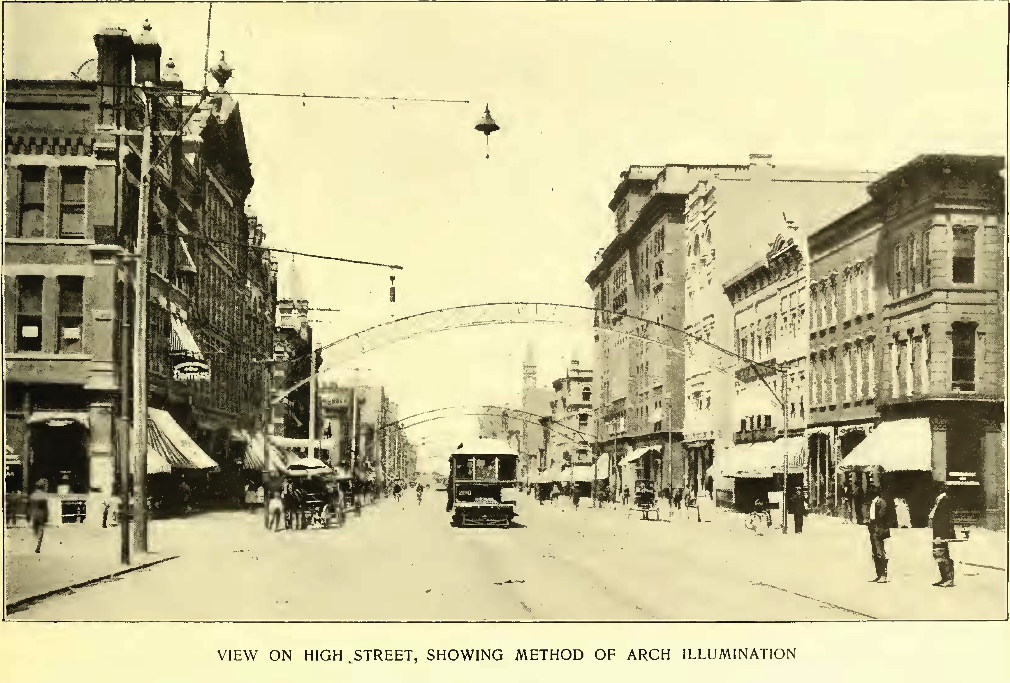 The arches apparently started in the core of Columbus downtown, over High Street at the statehouse. Arches were quickly added south on High.