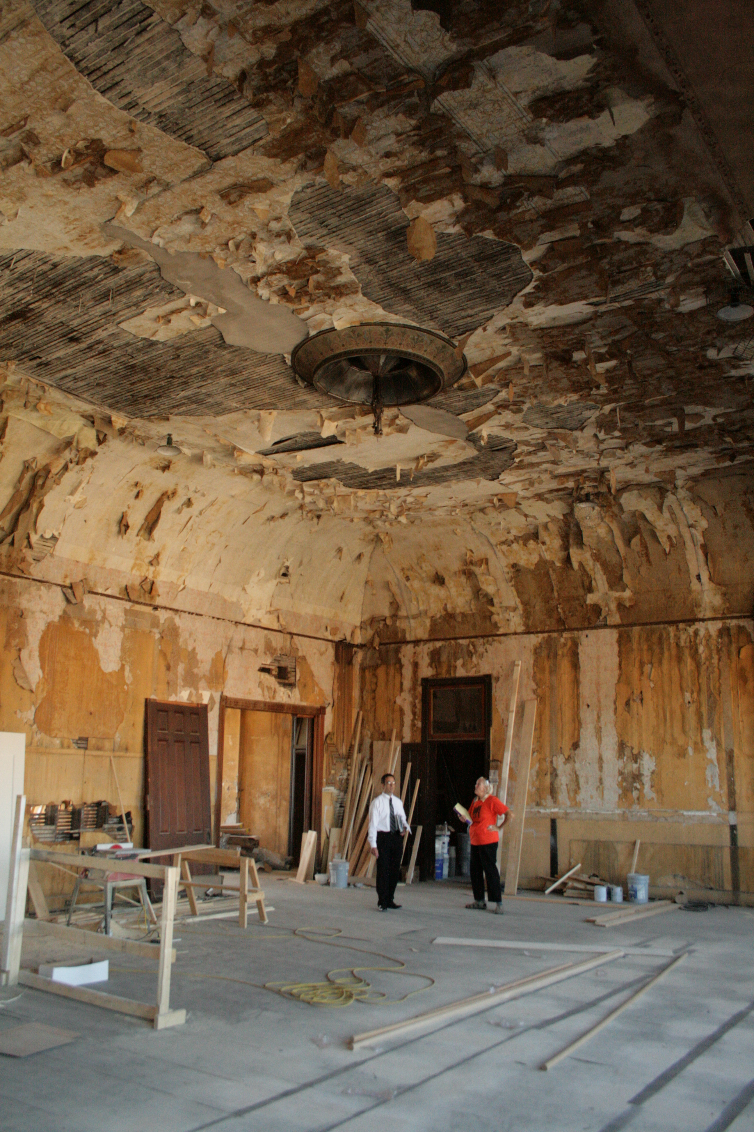 A chandelier with 30 gas lights and 25 incandescent lights hung in the center of the Howson ballroom, now gone.